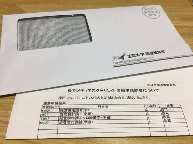 既に申し込みを済ませた後期メディスクですが、先日ようやく履修申請結果が届きました。